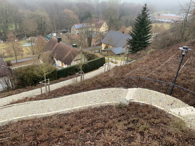 Hierbei handelt es sich um eine öffentliche Anlage für die Stadt Erbendorf, geplant durch Landschaftsarchitekt Strohn. Es wurde eine Aussichtsplattform und Verbindungswege mit einer spektakulären Treppenanlage umgesetzt. realisiert 2019 Natursteinbeläge aus einheimischen Fichtelgebirgsgranit Treppenstufen ebenfalls aus einheimischen Flossenbürger Granit wassergebundene Wege vor den sanierten Kellern Mauersanierung Von uns wurden alle Arbeiten durchgeführt wie: Erdarbeiten, Tragschichten,…